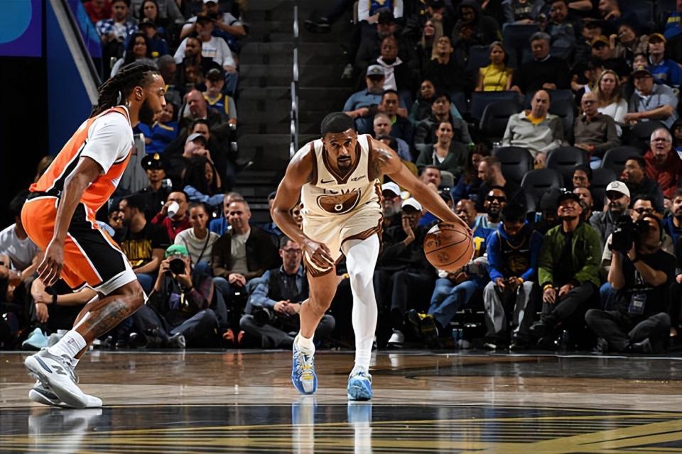 本场比赛中,勇士的先发后场大将丹东尼-梅尔顿(De'Anthony Melton)的表现实在是不太理想。梅尔顿全场出场27分05秒,投篮14中3,三分线外7中1,得到了7分4篮板2助攻1抢断的数据,还有2次失误和4次犯规,正负值为-16。梅尔顿在本场比赛中得到了大量的出手机会,然而他的进攻效率一塌糊涂,他的得分能力投射能力完全没有发挥出来,他浪费了大量的机会,而且他在进攻选择方面的问题非常明显。梅尔顿不仅在进攻端的表现不太理想,而且他在防守端的表现也有些不如预期,梅尔顿按理说应该是一名可靠的防守者,但是至少在本场比赛中,他在专注度方面也存在着一定的问题。梅尔顿在本场比赛中算是完全没有发挥出自己的价值,完完全全拖了球队的后腿。