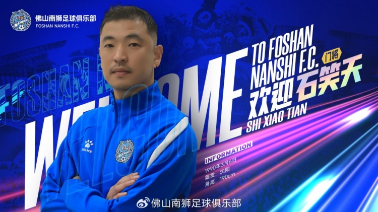 经与球员本人友好协商并达成一致,即日起,经验丰富的守护者石笑天正式加盟佛山南狮足球俱乐部,2026赛,他将身披南狮战袍,为城市而战,镇守球队的最后一道防线。